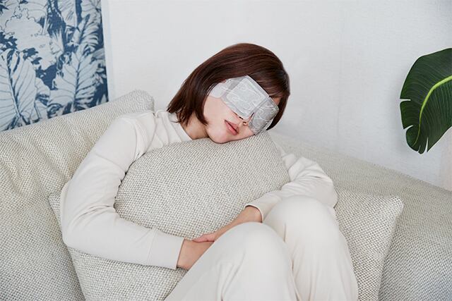 ③ Hook the elastic loops over both ears to position the mask comfortably over closed eyes